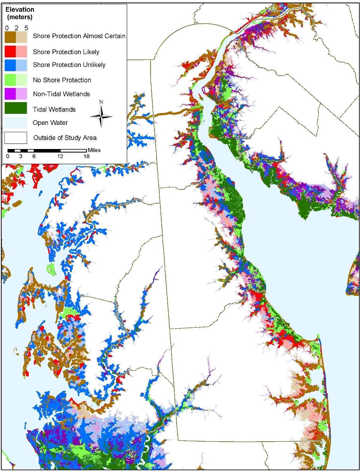 Download print quality version of the Delaware sea level rise planning map.